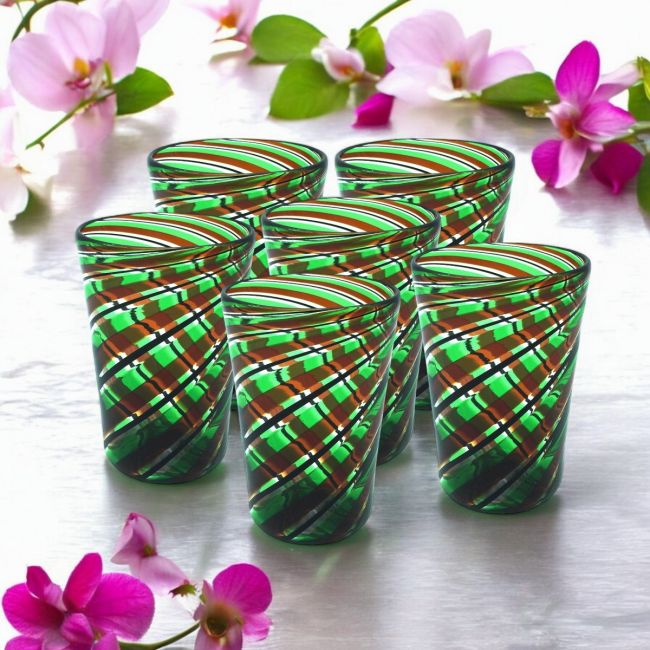 VASOS DE AGUA GINESTRA Juego de 6 vasos de agua de cristal pintados a mano en Venecia, auténtico Made in Italy VASOS DE AGUA GINESTRA Juego de 6 vasos de agua de cristal pintados a mano en Venecia, auténtico Made in Italy