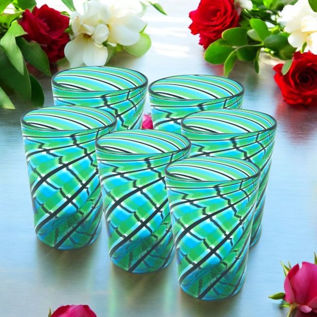 ACQUA CANNE Juego de 6 vasos de cristal de Murano Made in Italy