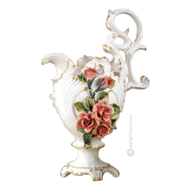 AMPHORA Jarrón artístico de cerámica estilo barroco con detalle en oro de 24k Made in Italy