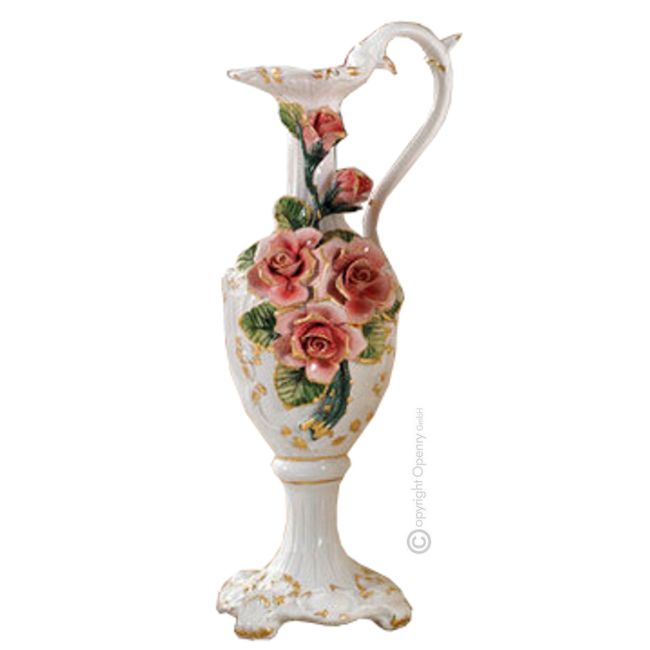AMPHORA Jarrón artístico de cerámica estilo barroco con detalle en oro de 24k Made in Italy