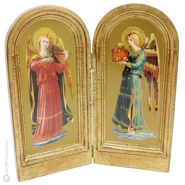 ÁNGELES MÚSICOS icono religioso de madera decorado con estampado de músicos en pan de oro de Beato Angelico
