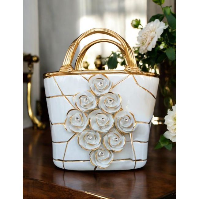 BOLSO Centro de mesa artístico de cerámica estilo barroco decoración con detalle en oro de 24k Made in Italy BOLSO Centro de mesa artístico de cerámica estilo barroco decoración con detalle en oro de 24k Made in Italy