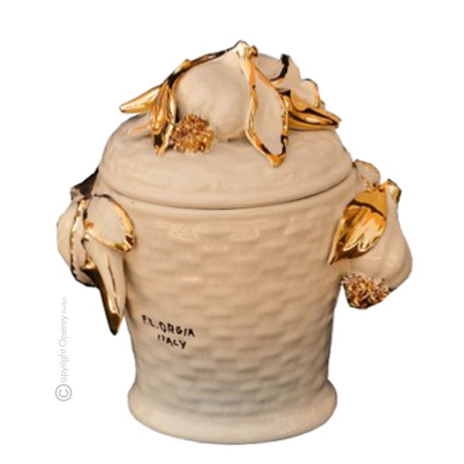 BOTE CON TAPA Centro de mesa artístico de cerámica estilo barroco, color oro 24k