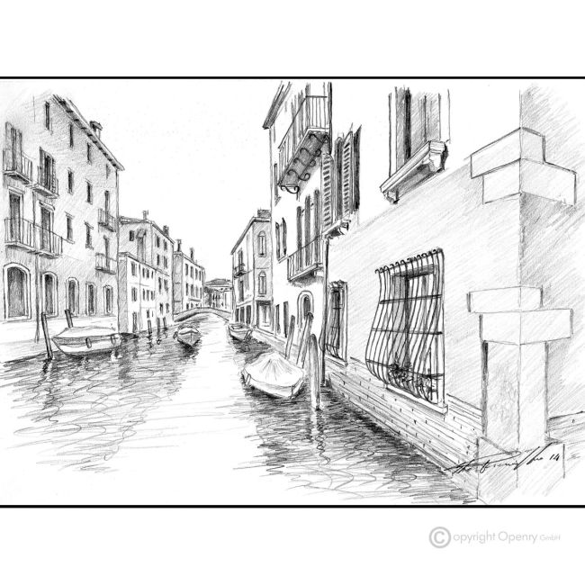 CALLE BERGAMI S.CROCE - VENECIA Dibujo a lápiz sobre cartón moderno Made in Italy CALLE BERGAMI S.CROCE - VENECIA Dibujo a lápiz sobre cartón moderno Made in Italy
