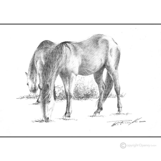 CABALLOS Dibujo con bolígrafo sobre lienzo moderno Made in Italy