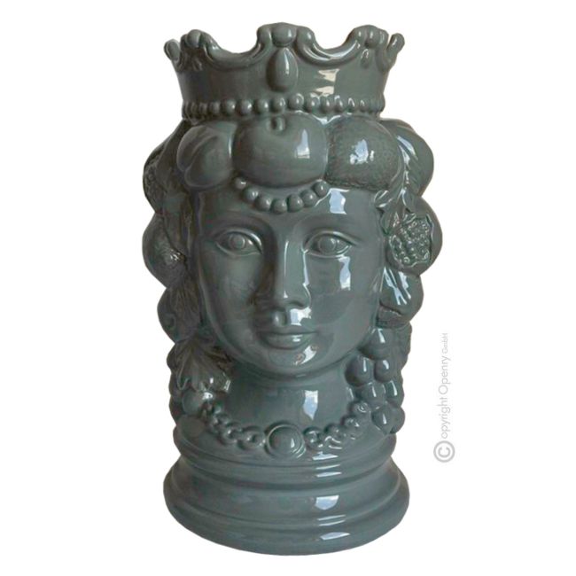 CABEZA MARRÓN FEMENINA Maceta y decoración artística de mesa en cerámica.