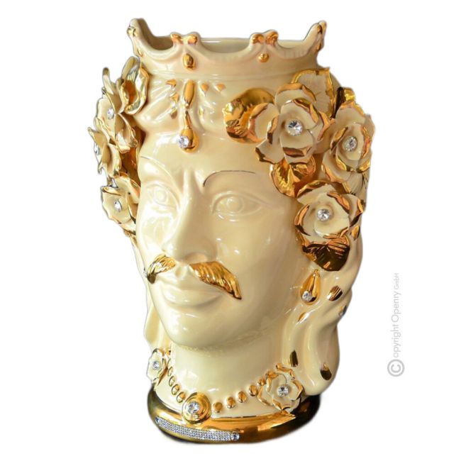 CABEZA MARRÓN MASCULINA Maceta y decoración de mesa detalles cerámicos artísticos Cristales Swarovski color oro 24k