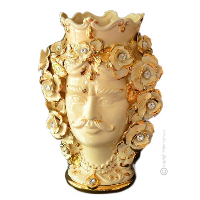 CABEZA MARRÓN MASCULINA Maceta y decoración de mesa detalles cerámicos artísticos Cristales Swarovski color oro 24k