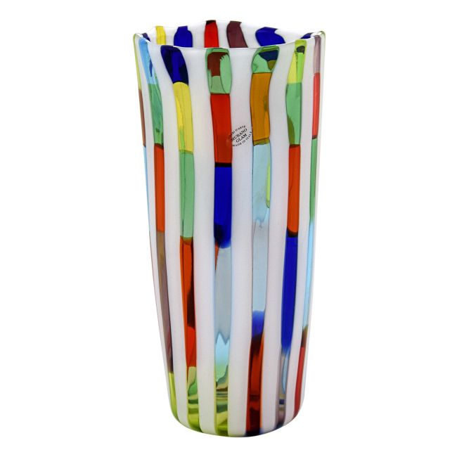 Clásico JARRON CANNE DE FILIGRANA veneciano hecho a mano en cristal de Murano. Medidas aprox. Alto 28 x largo 13 cm. ¿Alguna vez ha poseído una pieza auténtica y única de la historia italiana? Déjate seducir por las creaciones originales en cristal de Murano de la Vetreria Artistica Murano Glam. Vetreria Artistica Murano Glam, gracias a las décadas de experiencia del Maestro Francesco Salvadori, crea artículos al más alto nivel de calidad y elaboración basados en técnicas tradicionales y refinadas que utilizan la infinita gama de colores del cristal de Murano, colores que son su característica peculiar. La familia Salvadori trabaja con vidrio de Murano desde principios del siglo XIX y se enorgullece de representar todavía hoy esta continuidad artística. Lo que le ofrecemos es artesanía italiana al más alto nivel, donde las manos no simplemente fabrican, sino que crean y esculpen. Los objetos de cristal de Murano Glam, de diseño clásico o moderno, ricos en colores y formas, incorporan la experiencia, la pasión y la creatividad de los maestros vidrieros que los crean cada día, a mano. Cada pieza es única, con sus pequeñas irregularidades, con la pequeña pero efectiva variación producida por el talento creativo del momento. Tanto en su entorno privado como en sus espacios de trabajo, un objeto de cristal de Murano de Vetreria Artistica Murano Glam tendrá un efecto muy decorativo y elegante, en el límite entre un elemento de decoración y una joya. El regalo ideal para ti, tu pareja o tus mejores amigos; No te lo puedes perder, por suerte sólo te separa un clic.
