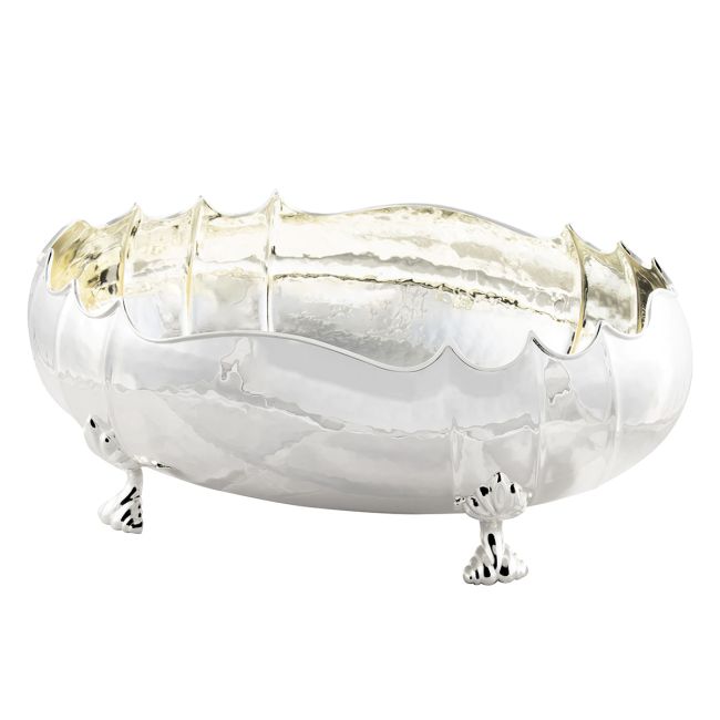 CENTRO DE CENTRO OVALADO 8 COSTILLAS Cuenco centro de mesa cesta bañado en plata artesanía hecha a mano Made in Italy