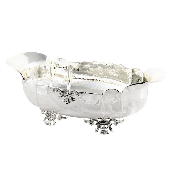 CENTRO DE CENTRO OVALADO Siglo XVIII Cuenco centro de mesa cesta bañado en plata artesanía hecha a mano Made in Italy