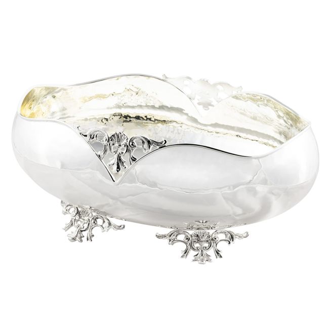 CENTRO DE MESA OVALADO CON BORDE DE FILÈ Cuenco centro de mesa cesta bañado en plata hecho a mano artesanalmente Made in Italy