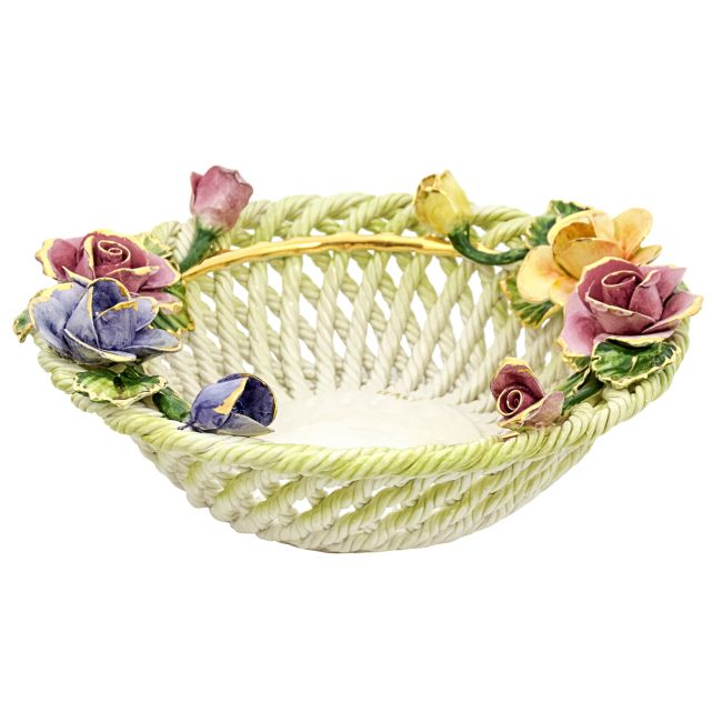 CENTRO DE PIEZA ROSEO Cesta de Cerámica Creaciones de Estilo Barroco Oro de 24k Hecho en Italia CENTRO DE PIEZA ROSEO Cesta de Cerámica Creaciones de Estilo Barroco Oro de 24k Hecho en Italia