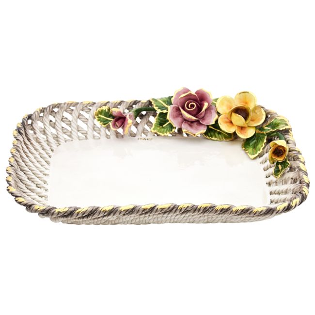 El CENTRO DUCAL es una creación artística en cerámica de estilo barroco, con auténtico dorado en oro de 24k. Medidas aproximadas: 6,5 x 34 x 26 cm. Las creaciones artísticas de cerámica de la empresa familiar italiana FL Orgia incorporan, desde 1965, décadas de experiencia artesanal en la fabricación de cerámica, en el característico estilo barroco. Objetos de este estilo y de factura muy compleja decoraron los ambientes y mesas más aristocráticos de Europa entre los siglos XVII y XVIII. Tierra, Agua, Aire y Fuego. Estas son las palabras claves de la Cerámica, un material con una historia milenaria. El sustantivo tiene origen en el griego Keramos (tierra cocida) y representó algo fundamental para el desarrollo de las civilizaciones pasadas, desde las civilizaciones maya, griega y romana, hasta la actualidad. Técnicas de refinamiento y pintura también en tonos Oro y Platino embellecen estos maravillosos objetos, dándoles un carácter de gran prestigio y exclusividad. Cada pieza es única, con la pequeña pero efectiva variación producida por el talento creativo del momento, hecha a mano por maestros artesanos tan hábiles como raros. FL Orgia garantiza que todos sus productos están íntegramente fabricados y decorados en sus laboratorios italianos, única y exclusivamente puro Made in Italy de la más alta calidad. Tanto en su entorno privado como en sus espacios de trabajo, un objeto artístico de cerámica de FL Orgia tendrá un efecto muy decorativo y elegante, en el límite entre un elemento de decoración y una joya. El regalo ideal para ti, tu pareja o tus mejores amigos; No te lo puedes perder, por suerte sólo te separa un clic.
