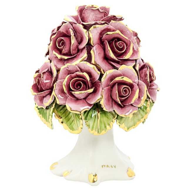 CENTRO DE PIEZA RAMO DE ROSAS Cerámica Creaciones Artísticas Estilo Barroco Oro 24k Hecho en Italia