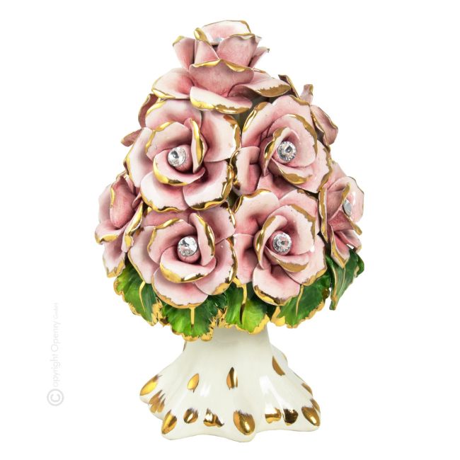 CENTRO DE PIEZA RAMO DE ROSAS Cerámica Creaciones Artísticas Estilo Barroco Oro 24k Hecho en Italia