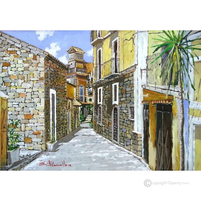 CENTRO HISTÓRICO AGROPOLI Pintura acrílica moderna sobre lienzo Made in Italy