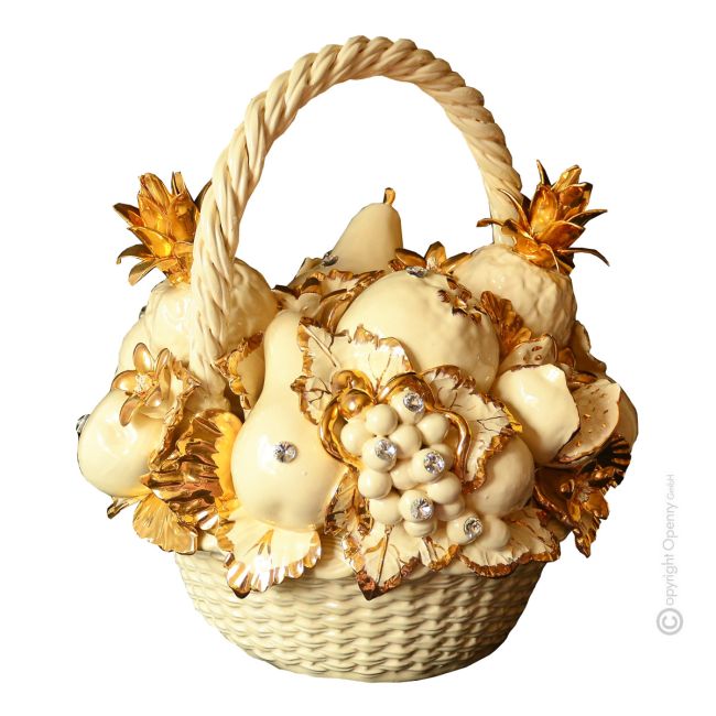 CESTA Centro de mesa artístico de cerámica estilo barroco decoración con detalle en oro de 24k Made in Italy