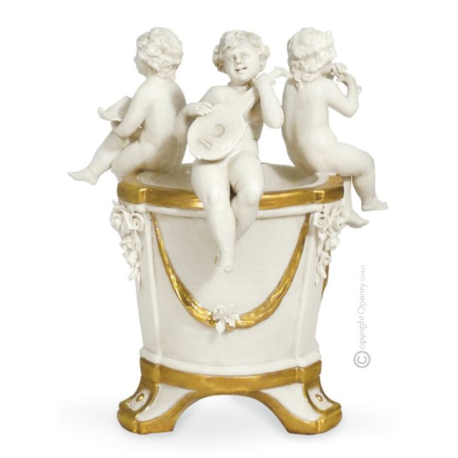 CHERUBI AL POZZO Figura de porcelana Capodimonte hecha a mano Made in Italy