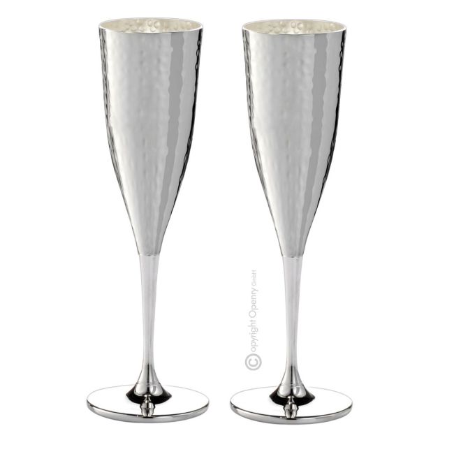 COPAS FLAUTA Juego de 2 Copas Copas Chapado en Plata Especial Hecho a Mano Made in Italy