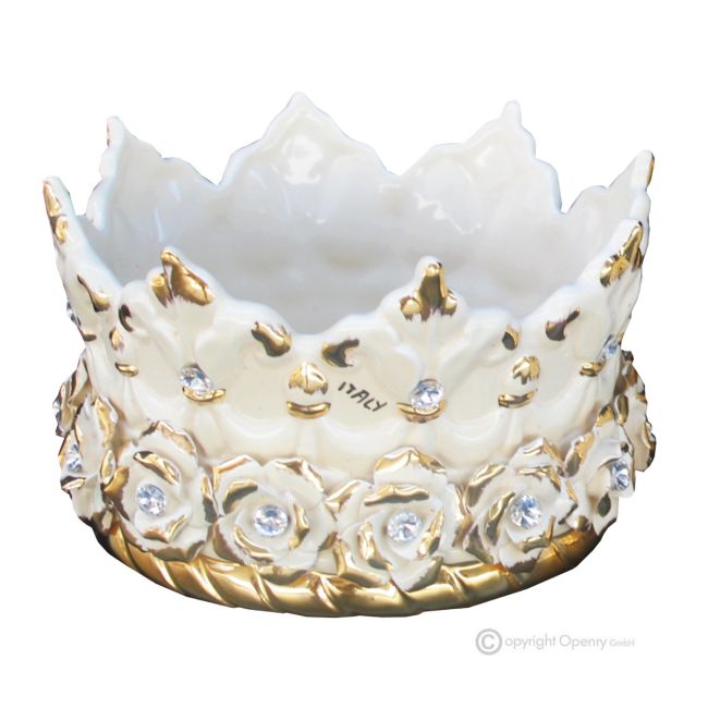 CORONA Centro de mesa artístico de cerámica estilo barroco con detalle en oro de 24k Made in Italy