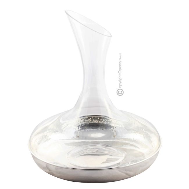 DECANTER CON FONDO DE PLATA Jarra de agua y vino en elegante combinación de cristal y baño de plata Martillado a mano Baño especial antioxidante Made in Italy *1,5l