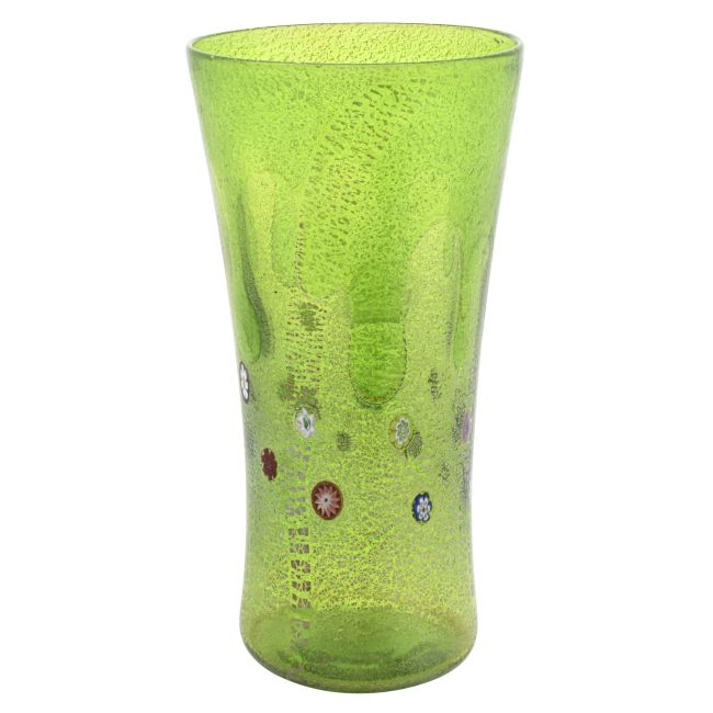 DROP VASE auténtico cristal de Murano soplado con Murrine y pan de plata 925 hecho a mano Made in Italy