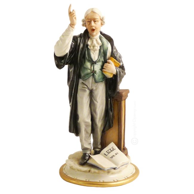 AVVOCATO es una creación artística en porcelana de Capodimonte. Medidas aprox. L13*H25cm El primer taller de porcelana de Europa fue fundado en 1743 en Capodimonte por Carlos III de Borbón, rey de Nápoles y las Dos Sicilias. Uno de los pocos herederos que continúa con pasión y entusiasmo esta antigua escuela y que con el tiempo se ha ganado la admiración de expertos y coleccionistas de todo el mundo es el taller de porcelana Príncipe, fundado en 1975 cerca de Vicenza. Heredero de una escuela que ha llevado al mundo el gusto y la creatividad de la porcelana italiana durante más de 250 años, Príncipe ha sabido combinar la creatividad napolitana con la originalidad veneciana, representando hoy un ejemplo de continuidad, investigación e innovación en el campo de la tradición. . Príncipe unió las diferentes personalidades de los tres artistas: Luciano Cazzola, escultor, Lino Gobbi, creador de formas y Sergio Traforetti, pintor, quienes lograron fusionar armoniosamente sus respectivas experiencias creando una rica producción que combina la atención al detalle con la cálida suavidad de los colores. . A través de los complementos de decoración existe el deseo de recrear, con absoluta fidelidad, copias de obras de época, mediante el uso de técnicas y materiales lo más parecidos posible a los utilizados por los artistas originales. Por su singularidad, estas reproducciones representan verdaderos objetos de arte para decoración y también constituyen una interesante oportunidad para los coleccionistas. Cada obra de arte sale de los laboratorios Príncipe marcada individualmente y acompañada de un certificado original que certifica su autenticidad y creación totalmente artesanal. El regalo ideal para ti, tu familia, tus mejores amigos, así como para tu círculo profesional, ¡no te lo pierdas!