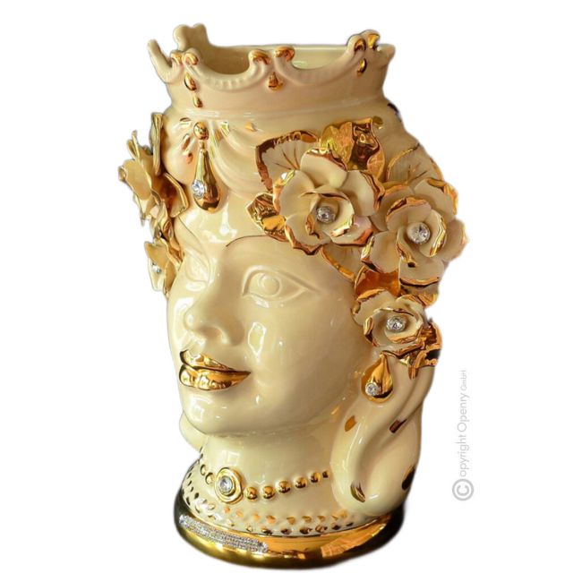 CABEZA MARRÓN MASCULINA Maceta y decoración de mesa detalles cerámicos artísticos Cristales Swarovski color oro 24k CABEZA MARRÓN MASCULINA Maceta y decoración de mesa detalles cerámicos artísticos Cristales Swarovski color oro 24k