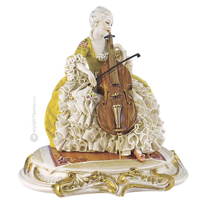 GENTILADO CON CELLO es una creación artística en porcelana de Capodimonte. Medidas aprox. Largo 26 x alto 26 cm. El primer taller de porcelana de Europa fue fundado en 1743 en Capodimonte por Carlos III de Borbón, rey de Nápoles y las Dos Sicilias. Uno de los pocos herederos que continúa con pasión y entusiasmo esta antigua escuela y que con el tiempo se ha ganado la admiración de expertos y coleccionistas de todo el mundo es el taller de porcelana Príncipe, fundado en 1975 cerca de Vicenza. Heredero de una escuela que ha llevado al mundo el gusto y la creatividad de la porcelana italiana durante más de 250 años, Príncipe ha sabido combinar la creatividad napolitana con la originalidad veneciana, representando hoy un ejemplo de continuidad, investigación e innovación en el campo de la tradición. . Príncipe unió las diferentes personalidades de los tres artistas: Luciano Cazzola, escultor, Lino Gobbi, creador de formas y Sergio Traforetti, pintor, quienes lograron fusionar armoniosamente sus respectivas experiencias creando una rica producción que combina la atención al detalle con la cálida suavidad de los colores. . A través de los complementos de decoración existe el deseo de recrear, con absoluta fidelidad, copias de obras de época, mediante el uso de técnicas y materiales lo más parecidos posible a los utilizados por los artistas originales. Por su singularidad, estas reproducciones representan verdaderos objetos de arte para decoración y también constituyen una oportunidad interesante para los coleccionistas. Cada obra de arte sale de los laboratorios Príncipe marcada individualmente y acompañada de un certificado original que certifica su autenticidad y creación totalmente artesanal. El regalo ideal para ti, tu familia, tus mejores amigos, así como para tu círculo profesional, ¡no te lo pierdas!