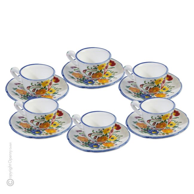 FIORACCIO POLICROMO CUPS juego de 6 tazas de café espresso con platillos Castelli cerámica hecha a mano auténtica Abruzzo Made in Italy