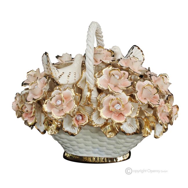 FLORES Centro de mesa artístico de cerámica estilo barroco decoración con detalle en oro de 24k Made in Italy