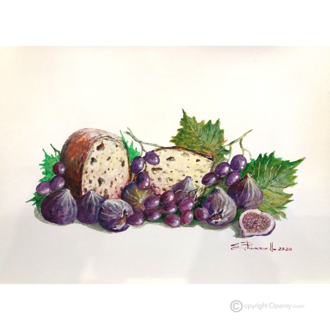HIGOS Y CIRUELAS Pintura acrílica moderna sobre lienzo Made in Italy