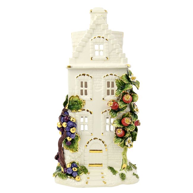 HOUSE Portavelas artístico de cerámica estilo barroco con detalles en color oro de 24k Made in Italy