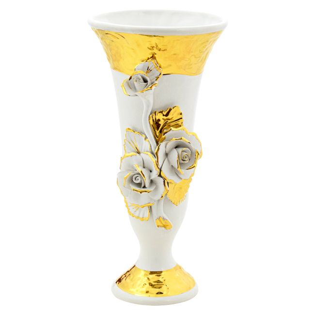 JARRÓN COPA DE ROSAS Jarrón de Cerámica Creaciones Artísticas Estilo Barroco Oro 24k Hecho en Italia