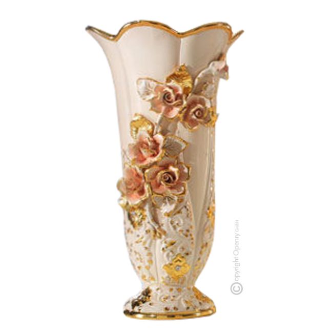JARRÓN de cerámica artística estilo barroco con detalle en oro de 24k Made in Italy JARRÓN de cerámica artística estilo barroco con detalle en oro de 24k Made in Italy