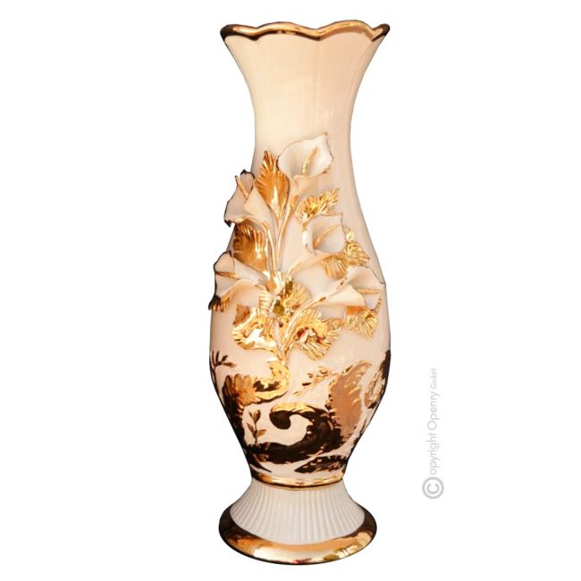JARRÓN de cerámica artística estilo barroco con detalle en oro de 24k Made in Italy JARRÓN de cerámica artística estilo barroco con detalle en oro de 24k Made in Italy