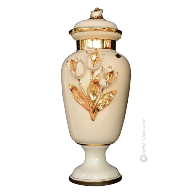 JARRÓN de cerámica artística estilo barroco con detalle en oro de 24k Made in Italy JARRÓN de cerámica artística estilo barroco con detalle en oro de 24k Made in Italy