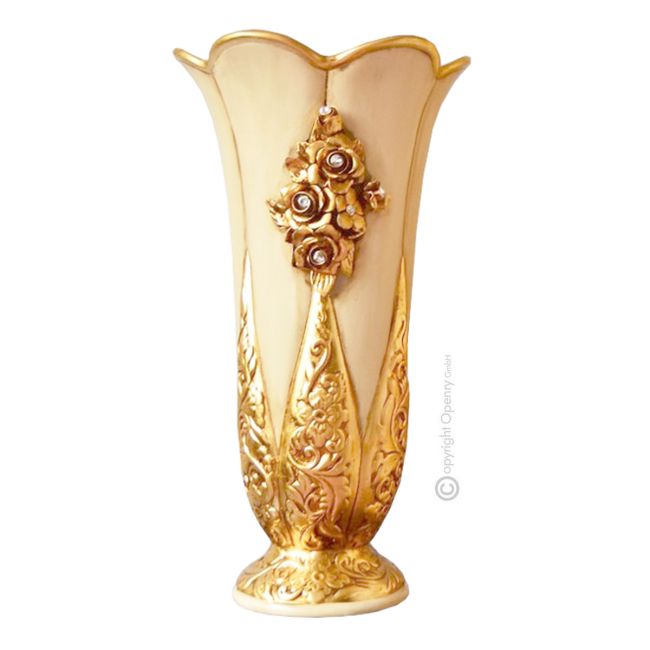 JARRÓN DE FLORES Cerámica artística estilo barroco con detalle en oro de 24k Made in Italy