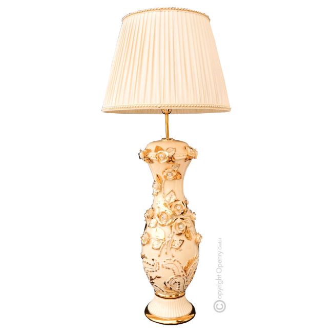 Lámpara de mesa artística de cerámica estilo barroco, detalle en oro de 24k, Made in Italy Lámpara de mesa artística de cerámica estilo barroco, detalle en oro de 24k, Made in Italy