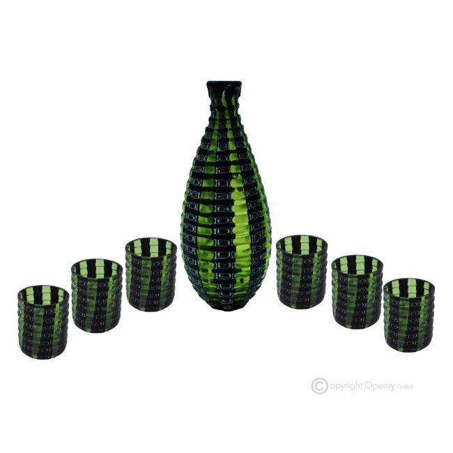 LICOR MURRINE Juego de 6 vasos de chupito con botella de cristal de Murano Made in Italy