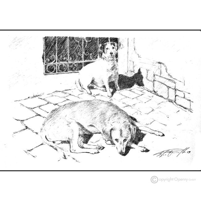 LOS PERROS GUARDIANES Dibujo con bolígrafo sobre lienzo moderno Made in Italy