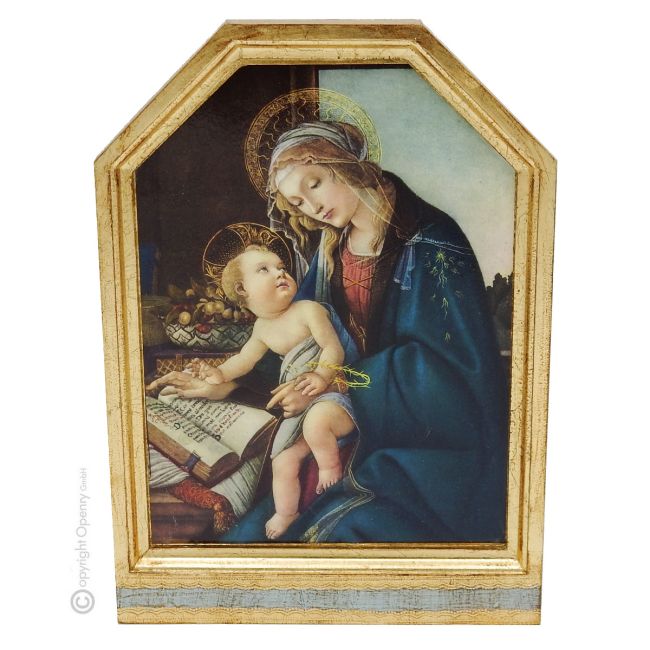 MADONNAS icono religioso de madera decorado con estampado Madonna Botticelli en pan de oro