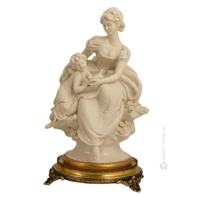 MADRE CON BEBÉ Estatuilla de figura de porcelana Capodimonte hecha a mano en Italia