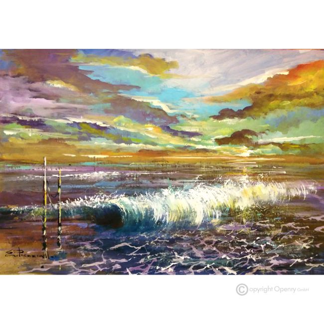 MAR Pintura acrílica moderna sobre lienzo Made in Italy