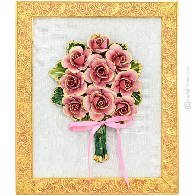 Marco decorativo artístico de cerámica estilo barroco con detalle en oro de 24k, Made in Italy