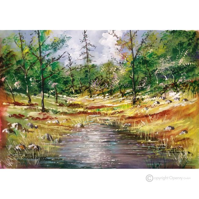 PASEO POR EL BOSQUE Pintura acrílica moderna sobre lienzo Made in Italy