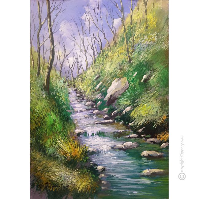 PASEO POR EL BOSQUE Pintura acrílica moderna sobre lienzo Made in Italy