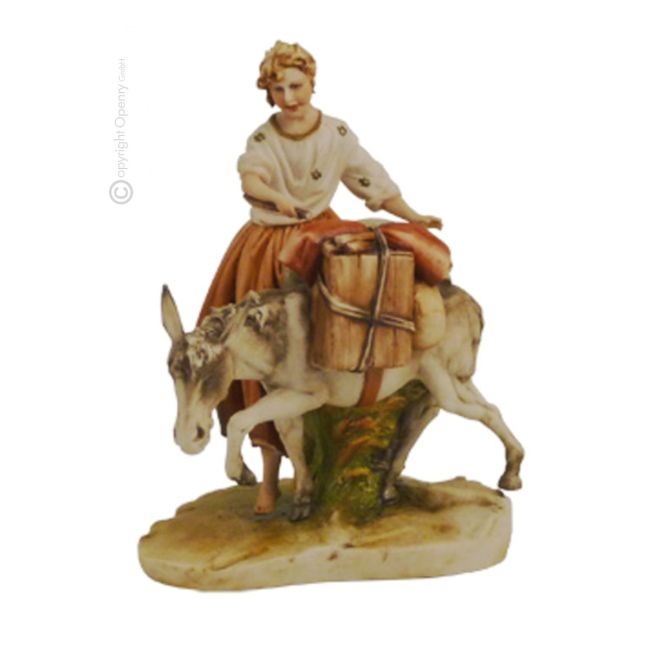 PASTOR CON BURRO Estatua figura de porcelana Capodimonte hecha a mano en Italia