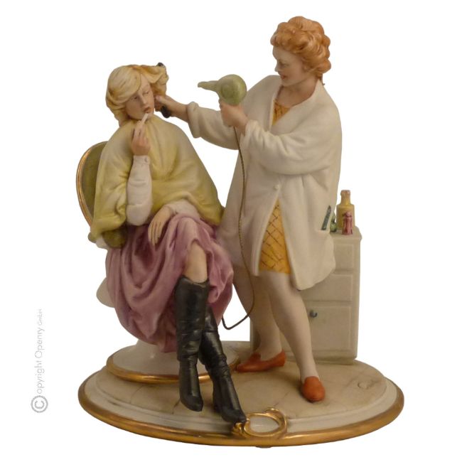 PELUQUERÍA Figura de porcelana Capodimonte hecha a mano Made in Italy